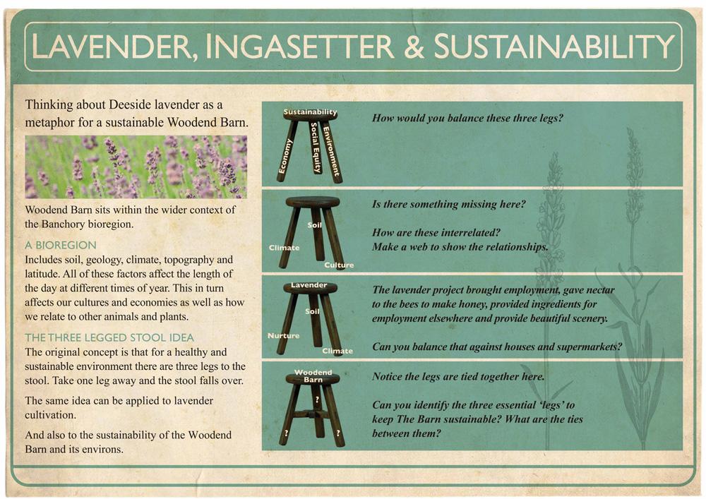 Many subjects were discussed, including the Alder tree and the red squirrel, while we ate, but the topic that told the richest stories and generated the most energy was The Deeside Lavender. Our approach was to select a metaphor that contained rich and interesting stories through which we could discuss the meaning of the term sustainability and in particular the specific organizational and wider sustainability of The Barn. As Paulo Friere proposes we are liberated through the experience or ‘transforming action’ of critically recognizing the nature of our own situations.