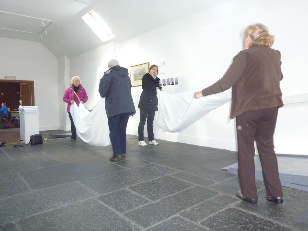 As artist in residence I have moved through the formal and informal networks of the organisation. This approach has allowed me to be active and reactive to the gallery programme and organisational development including; devising and chairing a development event for directors, staff, friends of The Barn and volunteers; supporting Evelyn Farquharson an artist based in Banchory, who graduated from Gray’s School of Art in 1954, in lending her work from the art school collection and working with her, the committee and the stewards though the process of the exhibition. I have lived in Banchory for this year and have regularly walked every route I can identify across the town and out to Woodend. Most significantly, I have spent time with a group of people. It is with this knowledge, gained through this particular experience that FOLD is made.